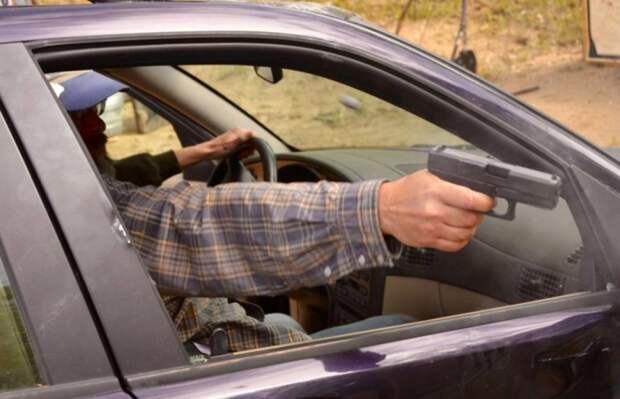 Стрелял нервный водитель из своего автомобиля, мотоциклист получил сквозную рану предплечья.
